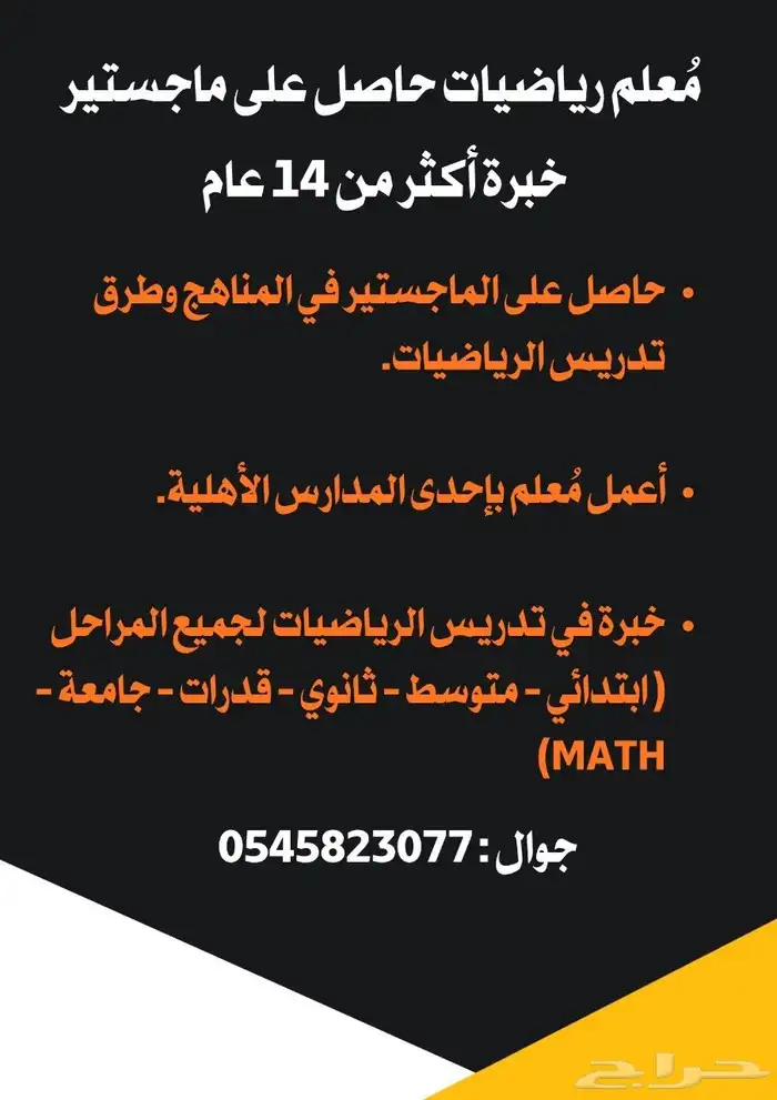 معلم رياضيات خبرة أكثر من 12 عام ( الخُبر - الظهران )