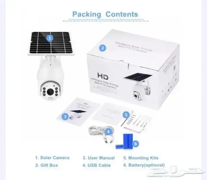 كاميرا تعمل بالطاقة الشمسية يتوفر منها 1) كاميرا تعمل على الواي فأي 2 ) وكاميرا تعمل على شريحة بيانات 4G تدعم جميع الشبكات - ضمان لمدة سنة - يمكن تثبيتها في أي مكان والمراقبه من بعيد بدون ما تحتاج لشبكة واي فاي ولا تحتاج راوتر ولا رسيفر ولا اي اسلاك وتميدات، مميزة للأماكن التي لا يوجد بها شبكة واي فاي مثل مراقبة المباني والفلل التي تحت الإنشاء، الاستراحات والمخيمات والمزارع والحلال والإسطبلات والبر🤩. مميزاتها: 1- عدسة تصوير واسعة جداً وجودة فيديو HD.😄 2- بث مباشر من الجوال بجوده عالية. 3- إمكانية الرجوع ومشاهدة الفيديو المحفوظ في ذاكرة الكاميرا عن طريق جوالك. 4- حاصلة على تصنيف IP67، هذا التصنيف خاص بالأجهزة المقاومة للحرائق والأعاصير والعواصف 5- تتحمل جميع الظروف الجوية🔥 6- يمكن تحريك الكاميرا من تطبيق الجوال بزاوية 360 درجة 7- رؤية ليلية بالأشعة تحت الحمراء تصل الى 80 متر واضحة جدا. 8- رؤية ليلية ملونة تصل الى 18 متر واضحة جداً 9 - تحتوي على حساس لإلتقاط اي حركة وارسال رسالة الى جوالك. هذا الحساس خاص جداً ولا يلتقط الا حركة الإنسان والحيوان. 10- تطبيقها مجاناً على الايفون والاندرويد ويمكن المشاهدة من أكثر من 10 جوالات ويمكن المشاهدة مباشر من اي مكان في العالم 11- ميكروفون ثنائي الصوت للتحدث والاستماع. 12- مناسبة اجواءنا بالسعودية تتحمل درجات حرارة حتى 80 درجة مئوية. 14- امكانية ربط أكثر من جوال مع الكاميرا. 15 - امكانية تركيب ذاكره مايكرو حتى 128 جيجا للتسجيل السعر 399 ريال شامل الشحن والتوصيل 👍🔥