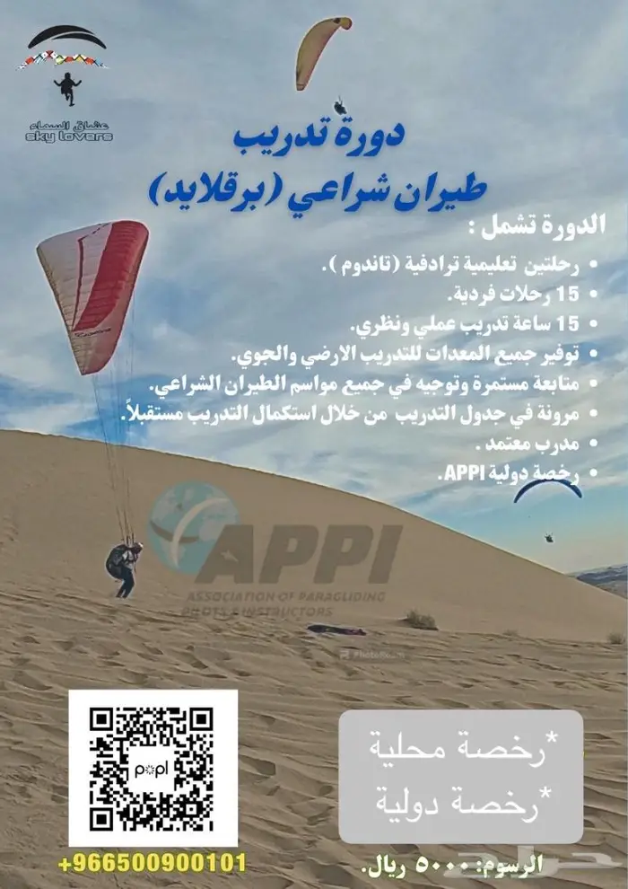 مدرب معتمد محليا ودولياً مواقع التدريب حسب المواسم منطقة عسير :الصيف والشتاء المنطقة الغربية : الشتاء تركيا والتدريب الخارجي : طوال العام ويوجد خصم للمجموعات ايضا يوجد تدريب على عربة الترايك