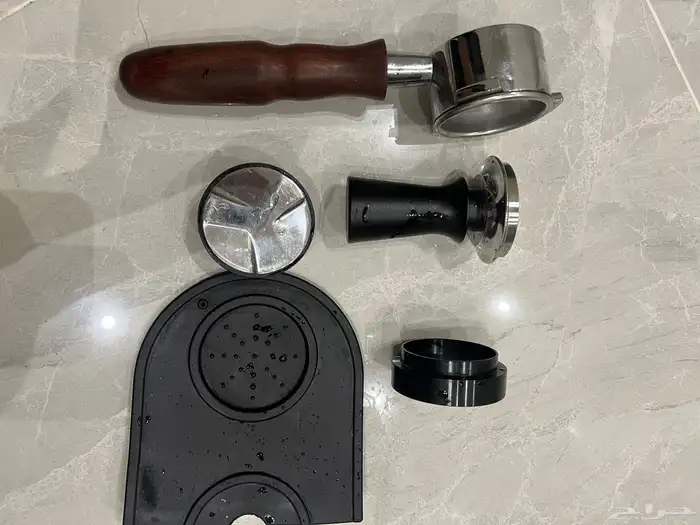 ادوات قهوه برستا مكبس قهوه مع موزع مكبس قهوه حلقه لعدم تناثر القهوه موضحه بصوره بورتافلتر مكشوف الجلده تنحط ع الطاوله للبيع لعدم الحاجه الكل ب300