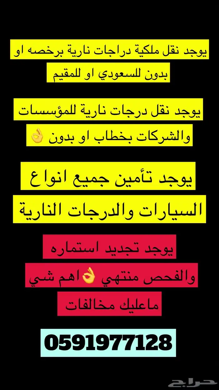 *** يوجد نقل درجات نارية للمؤسسات والشركات بخطاب او بدون ***