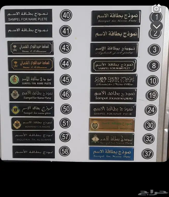 تجهيز لوحات الاسم ( قزاز - بلاستيك - تطريز - طباعه ) للقطاعات العسكرية والشركات حسب الطلب بالنسبة للسعر في الخاص وفي متناول الجميع