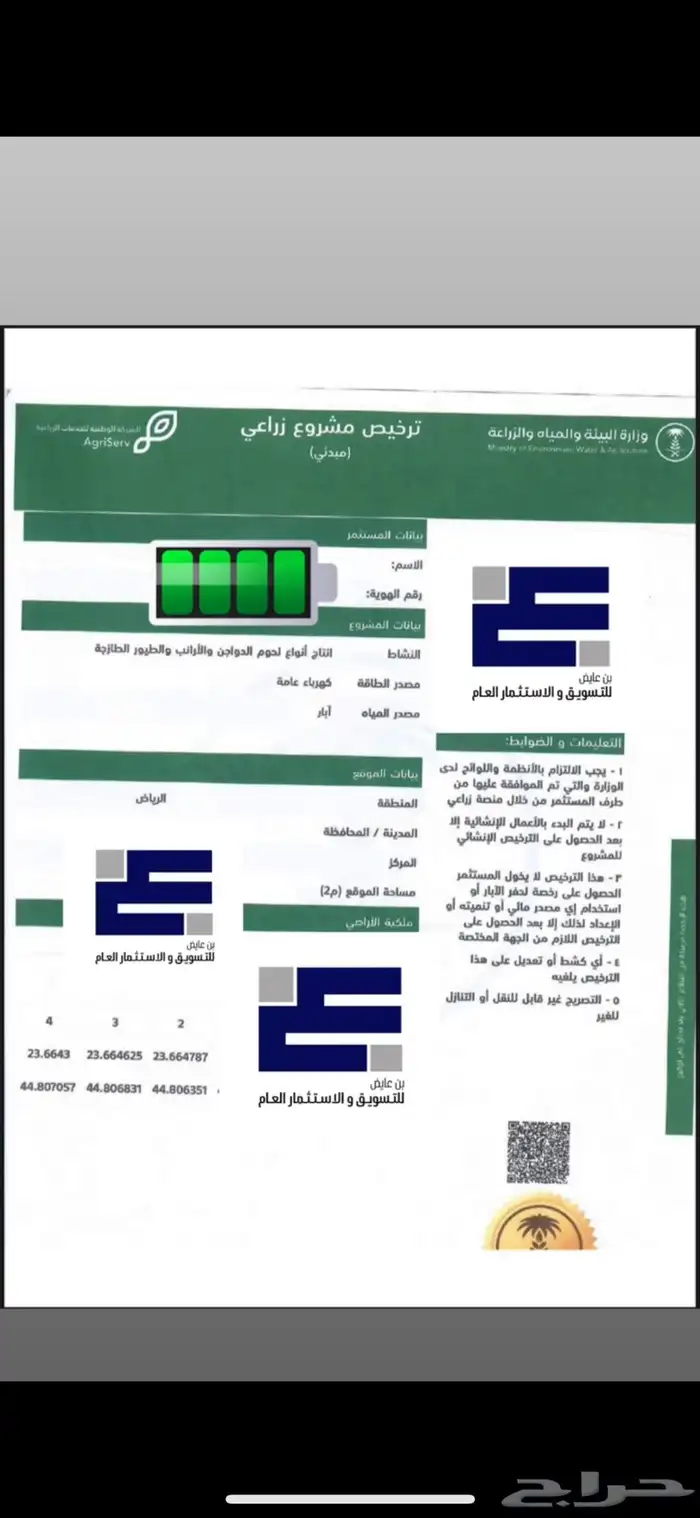 ترخيص مسلخ دواجن للبيع الرياض