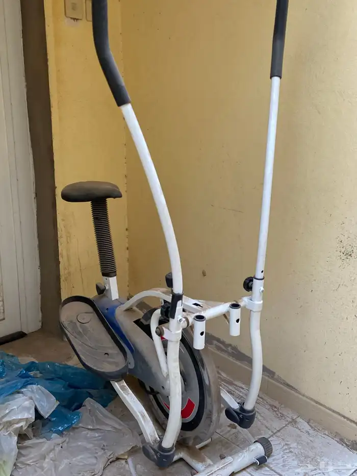 Elliptical Trainer دراجه تمرين الكارديو مواصفات الدراجه: مقابض متحركة مقعد قابل للتعديل عجلات وحركة سلسة هيكل معدني الجهاز مااستخدم من سنتين تقريبا فيه مشكله ان السير مقطوع بس