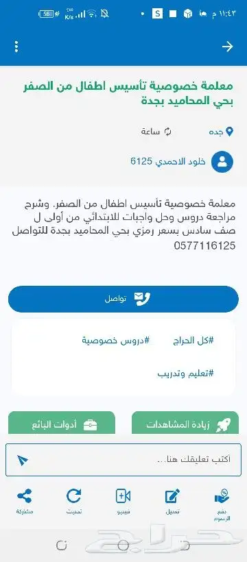 معلمة تأسيس اطفال جدة بحي المحاميد