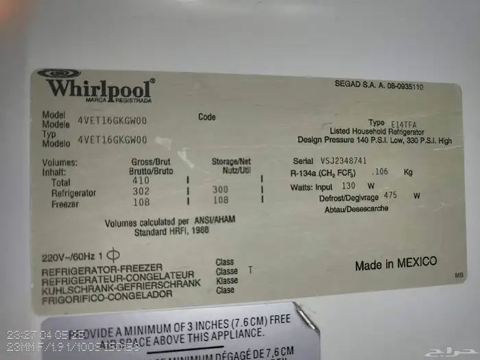 ثلاجه ويرلبول Whirlpool الغنيه عن التعريف الصناعه مكسيكي نظيفه على الشرط وشغاله ضمان مده يومين شبك تبريد خارجي النوع المرغوب السعر 800 ريال للصامل اي سومات لاينظر لها