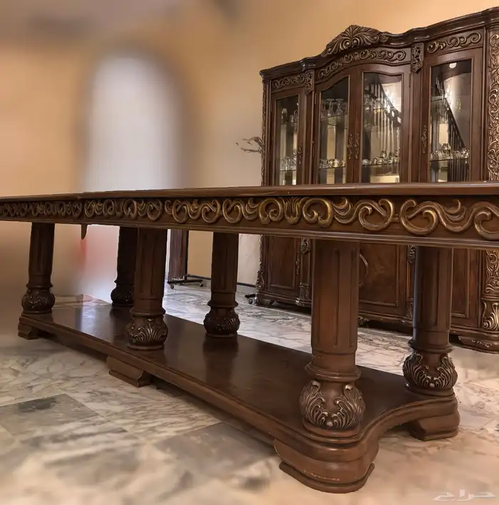 طاولة طعام + بوفيه من المطلق للمفروشات مستعمل نظيف تكفي 12 شخص للجادين فقط
