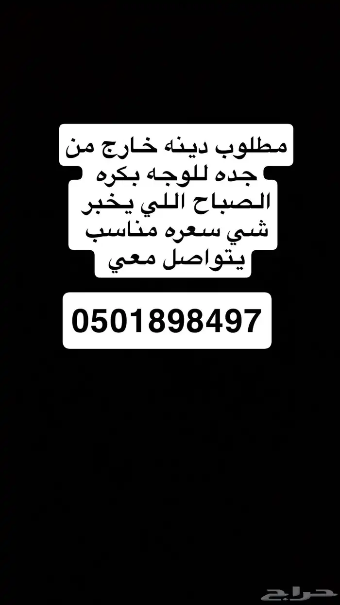مطلوب نقل اغراض من جده الى الوجه اللي خابر وخارج يكلمني +966 ( رقم الجوال يظهر عند الضغط على زر تواصل )