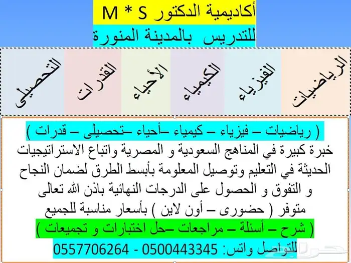 اكاديميه دكتور M S للتدريس الحديث بالمدينه المنورة ...خبرة كبيرة ..طرق حديثة ..اسعار مناسبه