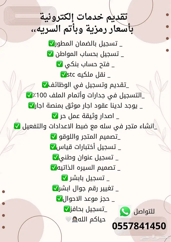 تقديم خدمات إلكترونية برسوم رمزية️ حياكم للطلب تواصلو واتس آب ( رقم الجوال يظهر عند الضغط على زر تواصل )