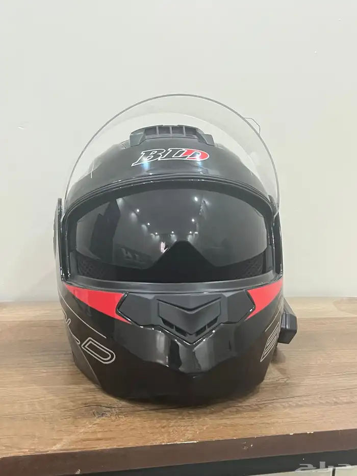 السلام عليكم اعرض خوذة للدراجه استخدام قليل ومقاسه موضح في الصوره مركب عليها سماعة داخلية ف الخوذه للبيع على السوم
