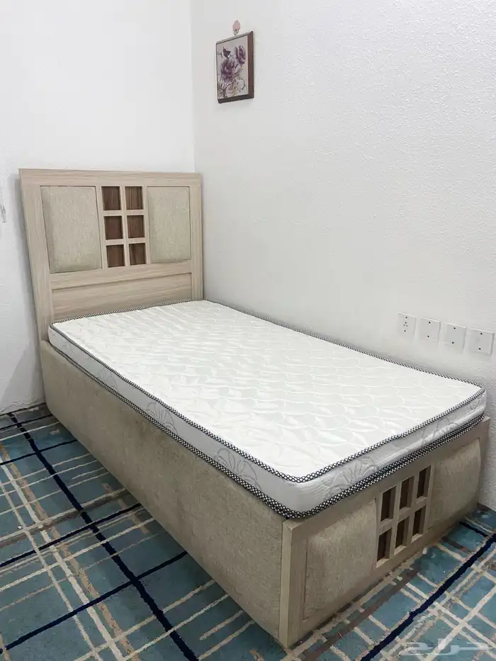 سرير نفر تفصيل خشب اصلي شبه جديد استخدام 3 سنوات مع مع مرتبته و فيها لباد وكمدينته وكرسي تسريحه ..