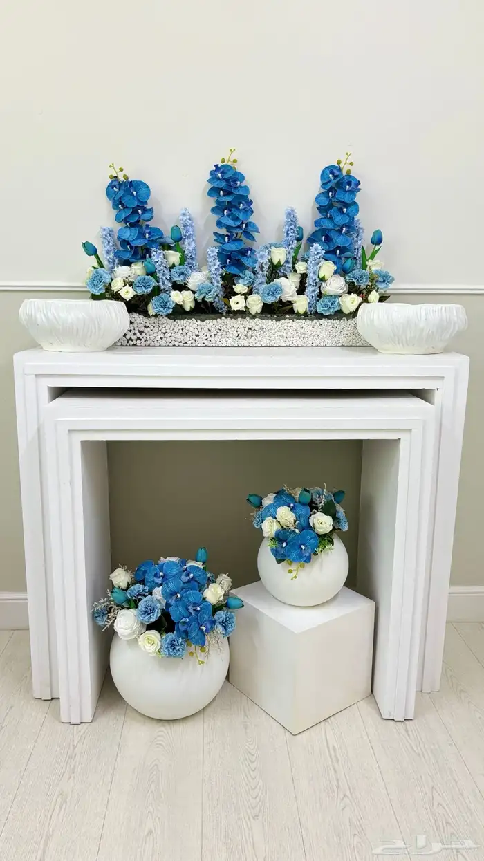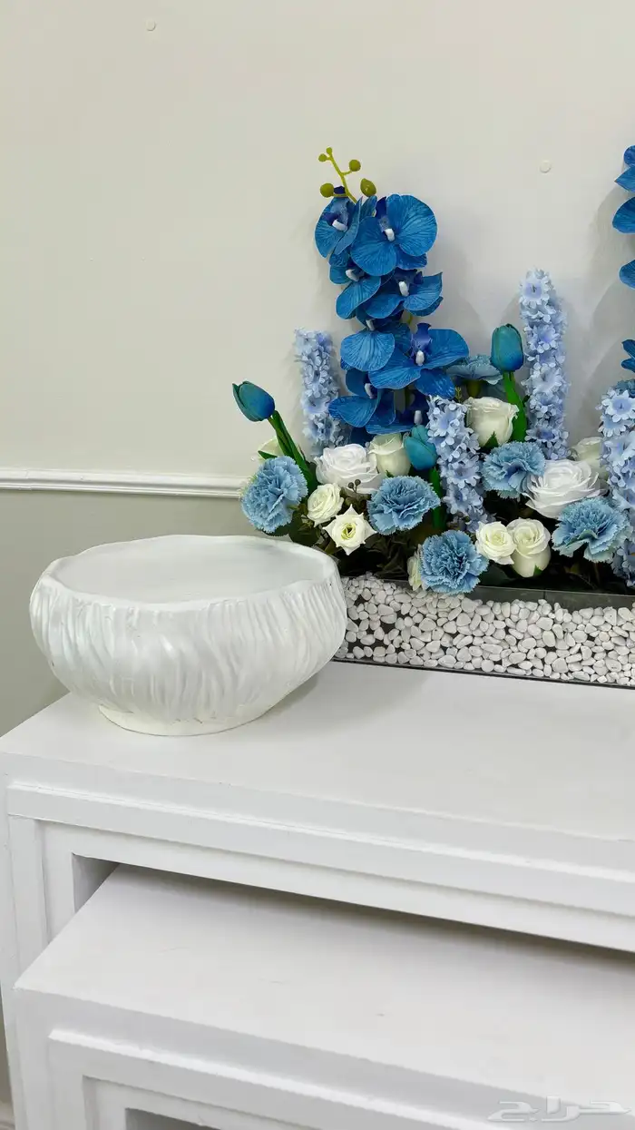 مدخل استقبال مستعمل عبارة عن ( طاولتين ، صينيتين ، ستاند ورد ، فازتين ورد )