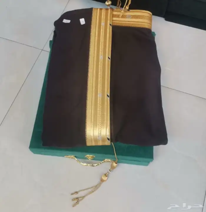 * اسم المنتج: مشلح البشت السعودي رجالي كمبيوتر أبيض سير ذهبي.