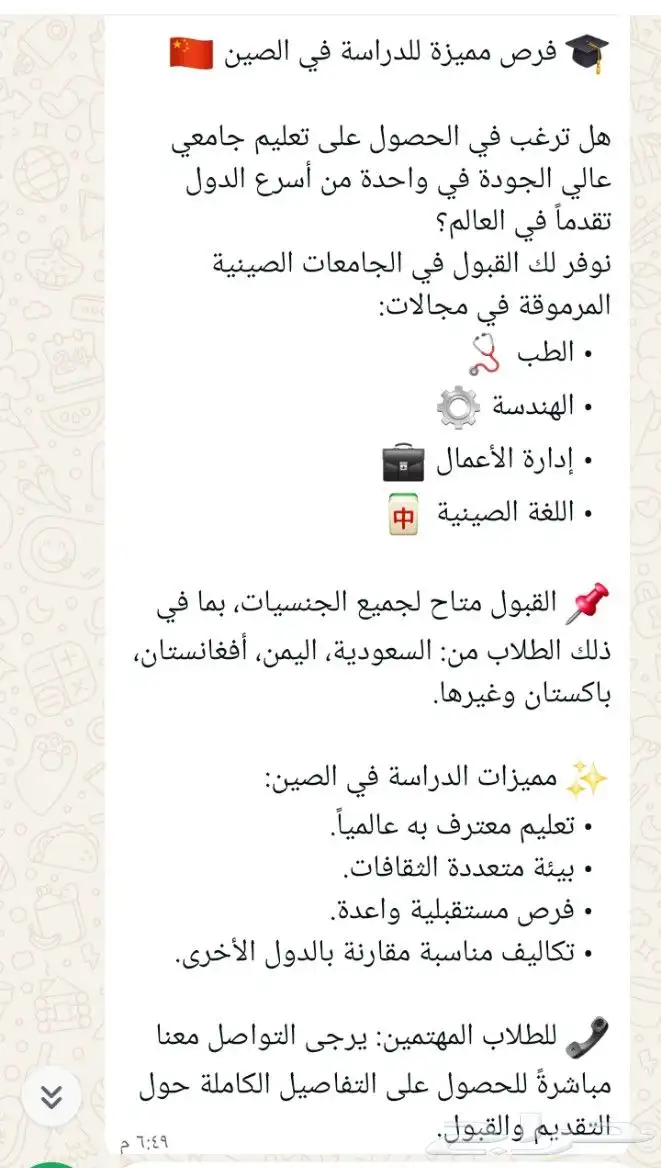 📞 للطلاب المهتمين: يرجى التواصل معنا مباشرةً للحصول على التفاصيل الكاملة حول التقديم والقبول.