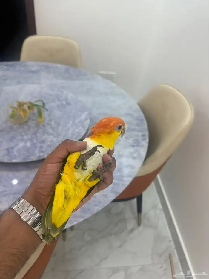 ماشالله للبيع فرخ كايك وايت بلي اليف وماعنه عض مرره ماشالله عليه العمر 11شهر الطير ينفع للطفال