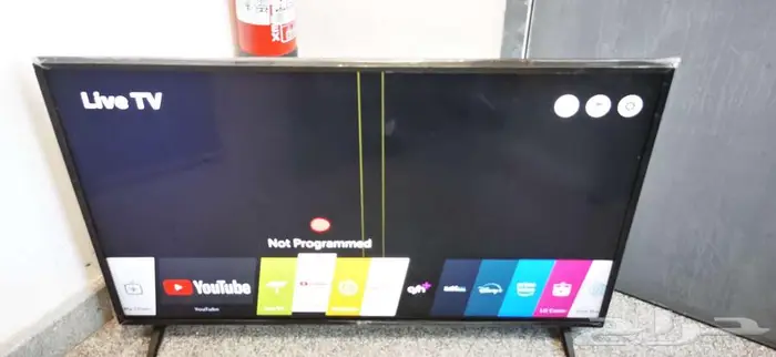 شاشتين LG سمارت 43 بوصة واحدة فيها خطين في نص الشاشة نفس ما موضح في الصورة شغالة أمورها طيبة وفي واحدة تحتاج ضبط فقط نظيفة وما فيها مشكلة والشاشتين سمارت يشغلو يوتيوب ونتفلكس ويشبكو الجوال على الشاشة بدون نت