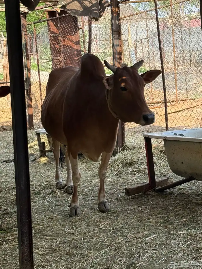 بقرة بلدية بعمر 5 سنوات تقريبا أكلها نظيف من المزرعة وصحتها طيبة ومشروطة من جميع العيوب خالية من الحمل حسب كشف السونار الموقع / المدينة المنورة طريق القصيم القديم بعد شركة المراعي