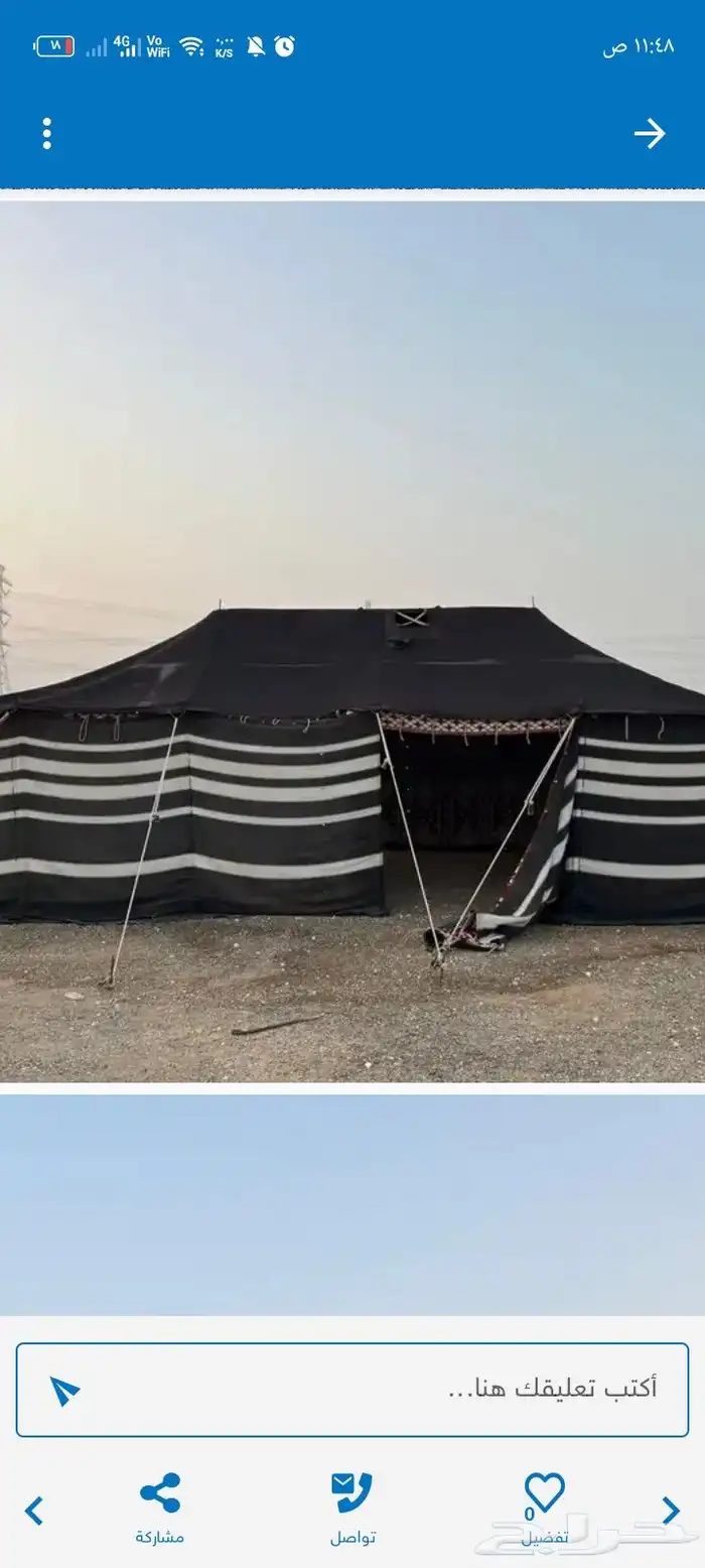 للبيع بيت شعر مبطن 5 8في 4 نضيف كافيه قطوع فيه فقط الطربال الاسفل قاصه منه