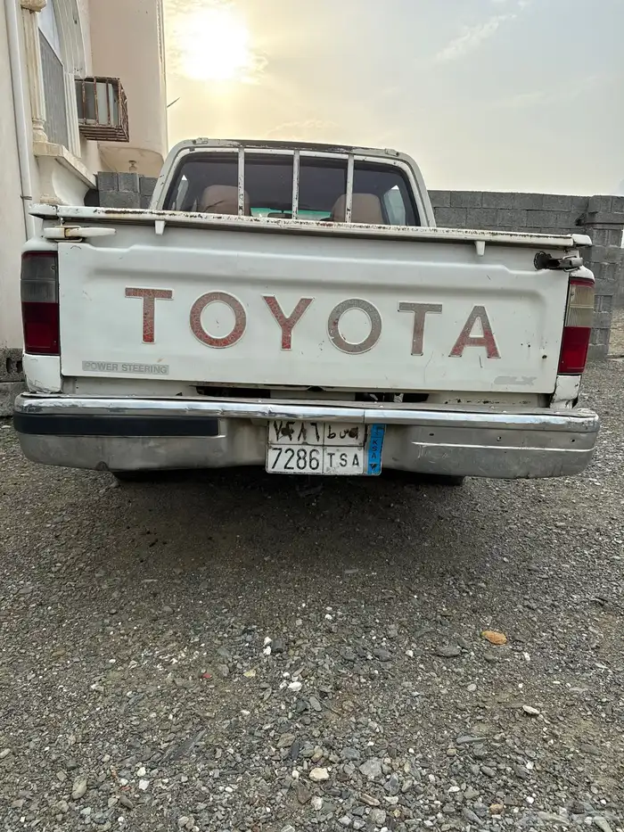 تويوتا هايلوكس GLX 2000 قير عادي بنزين الممشى: 300 ألف كيلو الموتر جته وجهيه قبل 9 سنوات وتم تصليحها بمبلغ وقدره الموتر يشتكي من المكينه وفيه مشكله تفتفه والموتر له فتره طويله واقف ويحتج له بعض التلقيط الاستماره منتهيه من عام 1436/6/22