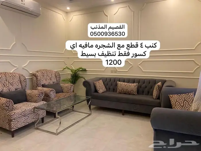 سلام عليكم اعرض لكم الكنب نظيف ولا يوجد فيه عيوب يحتاج تنضيف خفيف فقط