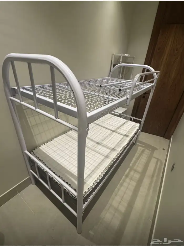 سرير دورين مع سلم من أقوى أنواع الحديد مع مرتبة واحدة و ستاند علاقي مع مراية كلهم جدد كلهم 1200 والفاتورة موجودة مشترى من شهر فقط والنقل ع المشتري التواصل واتسب فقط الموقع الخبر حي البحر