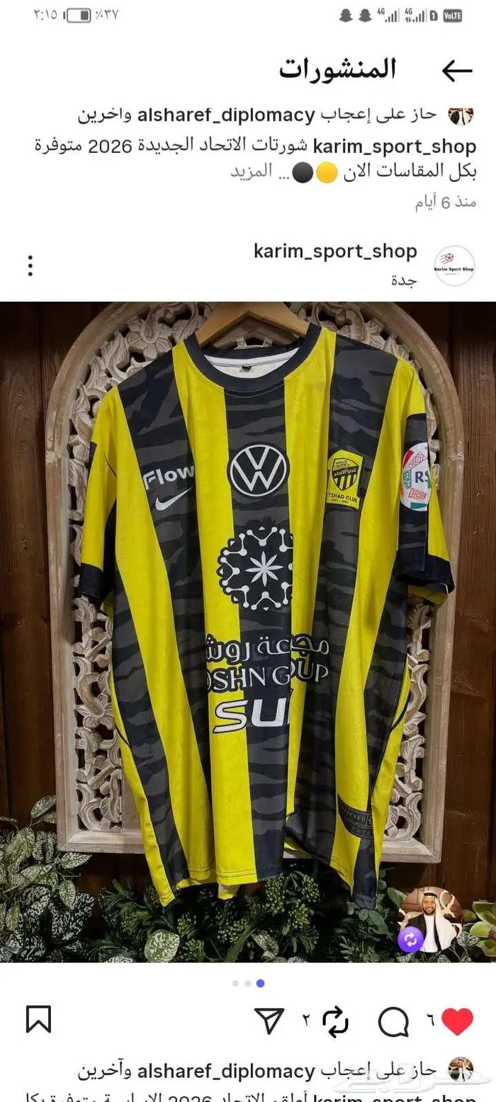 السلام عليكم ورحمة الله وبركاته متوفر تيشيرت الاتحاد الجديد، قماش تايلندي، جميع المقاسات أكبر مقاس 8xl سعر التيشيرت 90 ريال سعر الشورت 25 ريال التواصل عن طريق الواتس اب