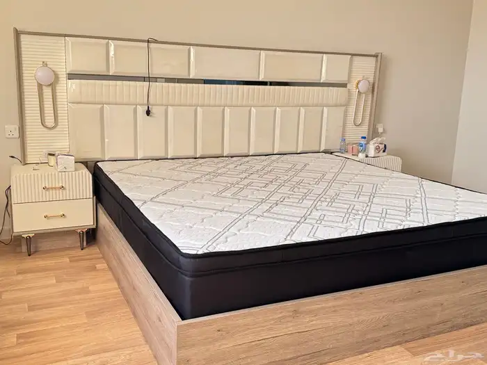 غرفة نوم مع المرتبه نظيفه وجديده مكونه من 8 قطع سرير 200*200 دولاب 8 ابواب تسريحتين جانبيه للسرير كوميدنه درج من خمس سحابات مرايه كرسي المرتبه نظيفه استخدام شهر التواصل رساله خاص