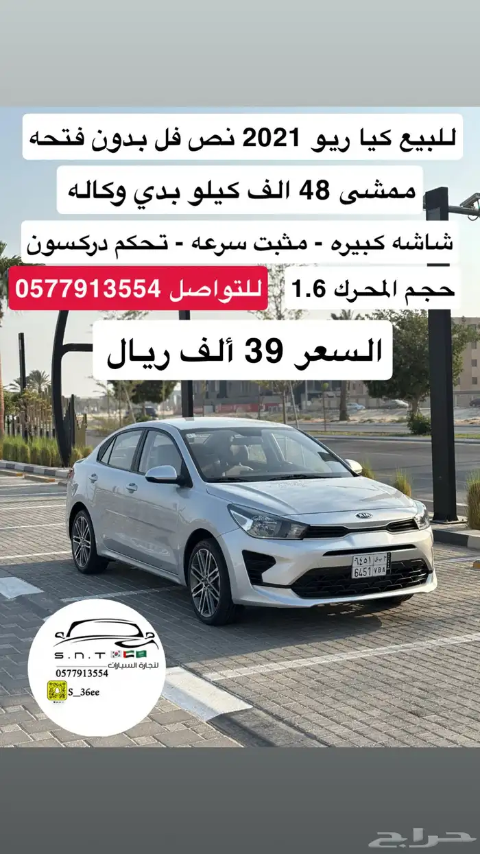 2021 قير اوتماتيك الممشى: 48 ألف كيلو للبيع كيا ريو 2021 نص فل بدون فتحه بدي وكاله بالكامل ممشى 48 الف كيلو السياره بحاله الوكاله تحكم دركسون - مثبت سرعه شاشه كبيره - كاميرا خلفيه