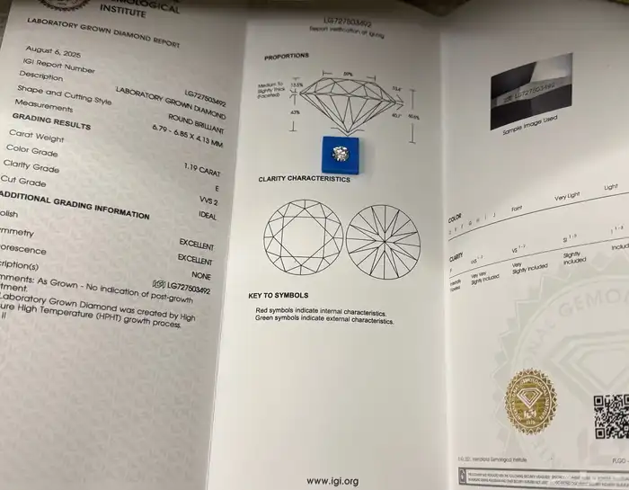 الماس مخبري 1.19 قيراط مع شهادة IGI