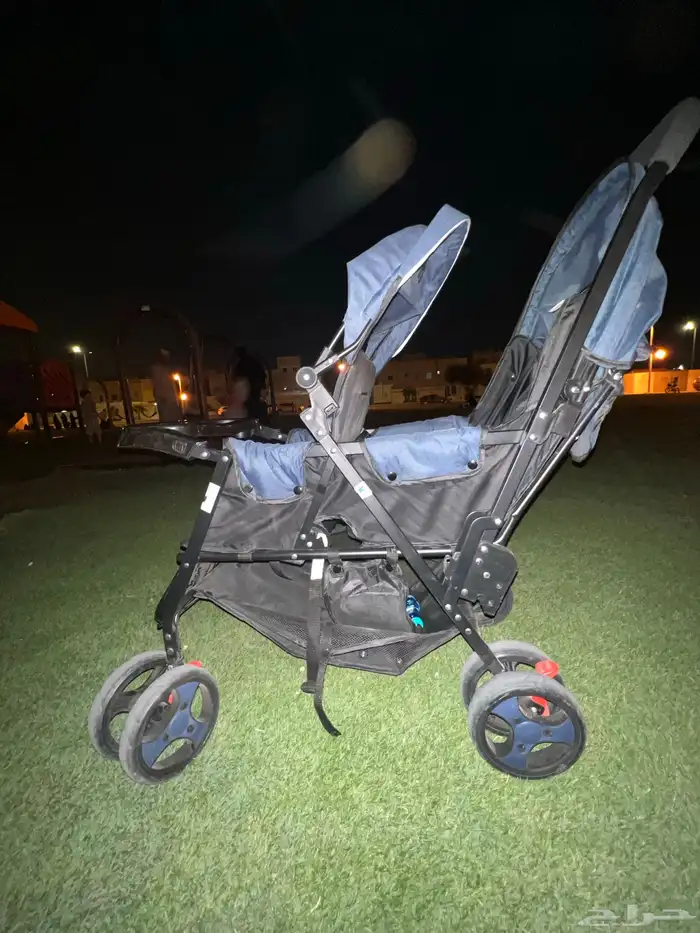 عربة اطفال توئم لون ازرق استعمال خفيف للبيع
