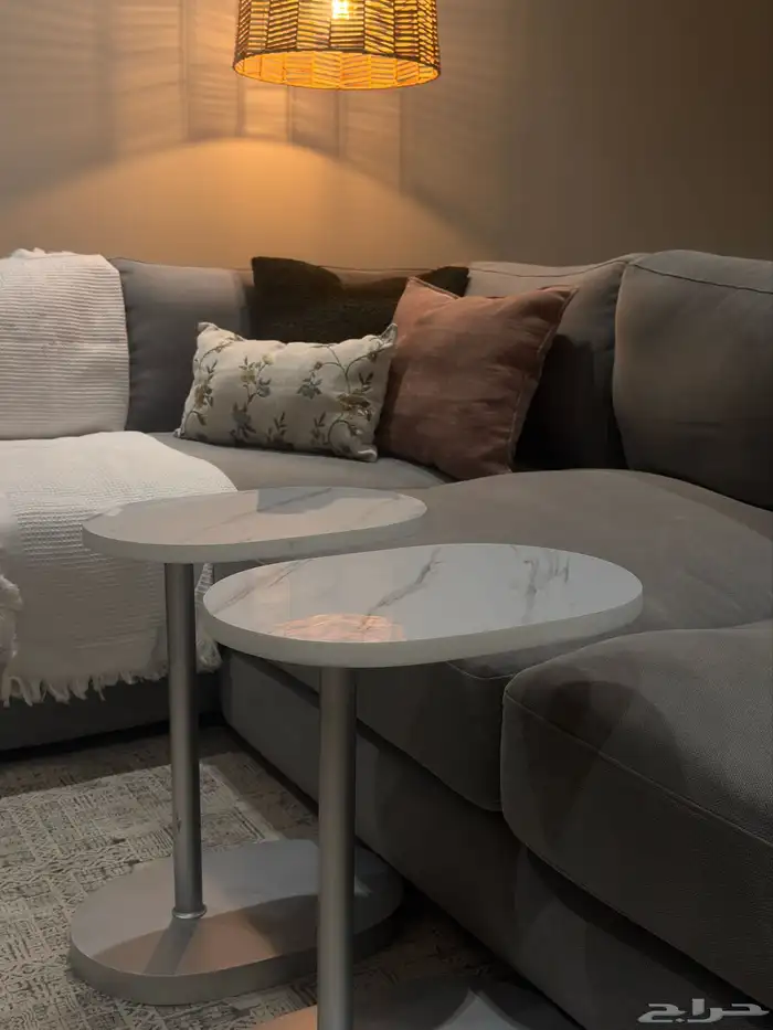 السلام عليكم ورحمة الله وبركاته طاولات خدمة عدد 6 ارتفاع 49 سم من فوق رخام الطاولات خفيفه ماهي مزعجه اثناء التحريك فيها الملاحظات البسيطه اللي بالصور عشان العمال اثناء النقل من بيت لبيت وحلها جداً بسيط بخاخ لون فضي لم استخدمها ولامره فصلتها ونقلت على طول واضطريت اغير بعض الاثاث ولم يتناسب معها البيع لاعلى سوم وان شاءالله مانختلف والتواصل خاص فقط ارجوا عدم الاتصال
