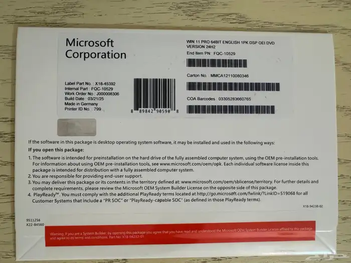 متوفر نظام ويندوز 11 برو 64بت الشريط الاصلي بظرف المصنع أسعار منافسه✅ كميات جمله لأصحاب المحلات ومفرد✅ يوجد شحن لجميع المناطق بإذن الله✅