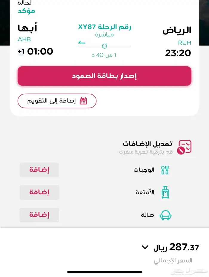 طيران تذكره من الرياض الى ابها بسعر ممتاز يوم السبت القادم 4 اكتوبر اساعه 11 ونص الليل