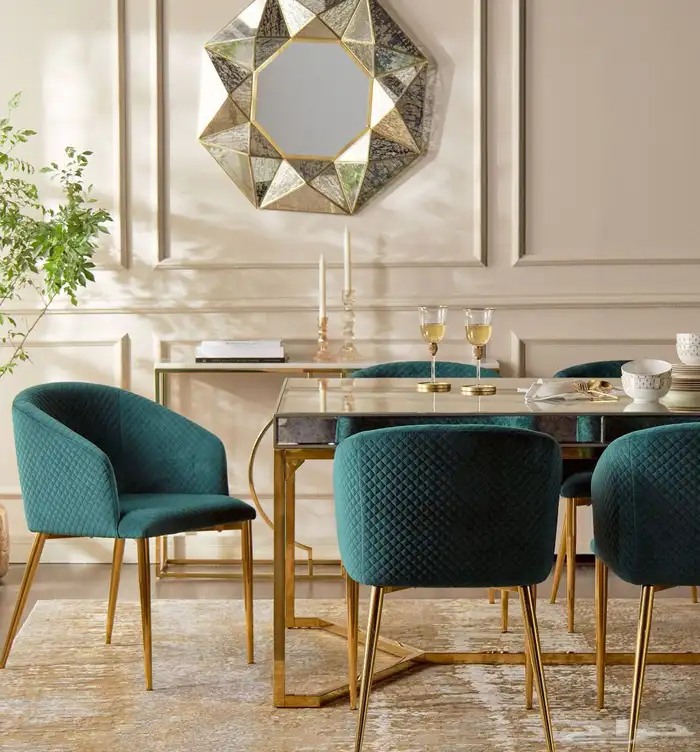 طاولة طعام زجاج فخمة من هوم سنتر 8 كراسي من القماش الفاخر باللون الاخضر اشتريتها ب 10.000 ريال سعر البيع 5000 ريال نظييييفة جدا جدا جدا وبوثق بالفديو للعميل * ملحوظة قماش غطاء الكراسي هدية مجاني 🎁
