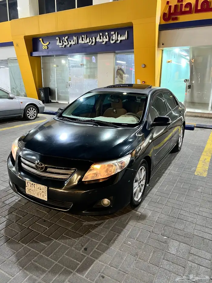 كورلا موديل 2009 اللون اسود داخليه بيج فل كامل فتحة في السقف المكينة الكبيرة 1،8 السيارة ماتشتكي من شي الحمد لله