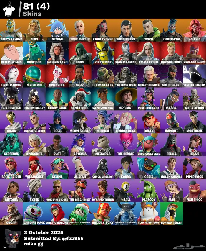حساب فورت نايت اساسي مع كامل معلوماته يربط سوني [PC] 81 skins | Spectra Knight | Zeus | Nezumi | Paradigm (Reality-659) | Kado Thorne | The Ageless | Twyn | Omegarok | Valeria | Peter Griffin | 350 VB للبيع على السوم