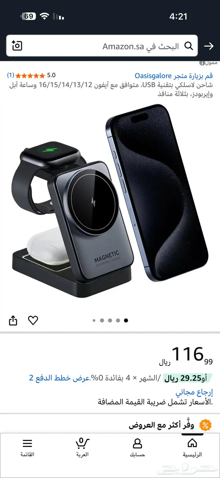 شاحن لاسلكي بتقنية USB، متوافق مع آيفون 16/15/14/13/12 وساعة آبل وإيربودز، بثلاثة منافذ اخو الجديد شريته و ما استخدمته كثير مافيه ولا شي مع كرتونته و سلكه الصامل يجي ( رقم الجوال يظهر عند الضغط على زر تواصل ) واتس فقط