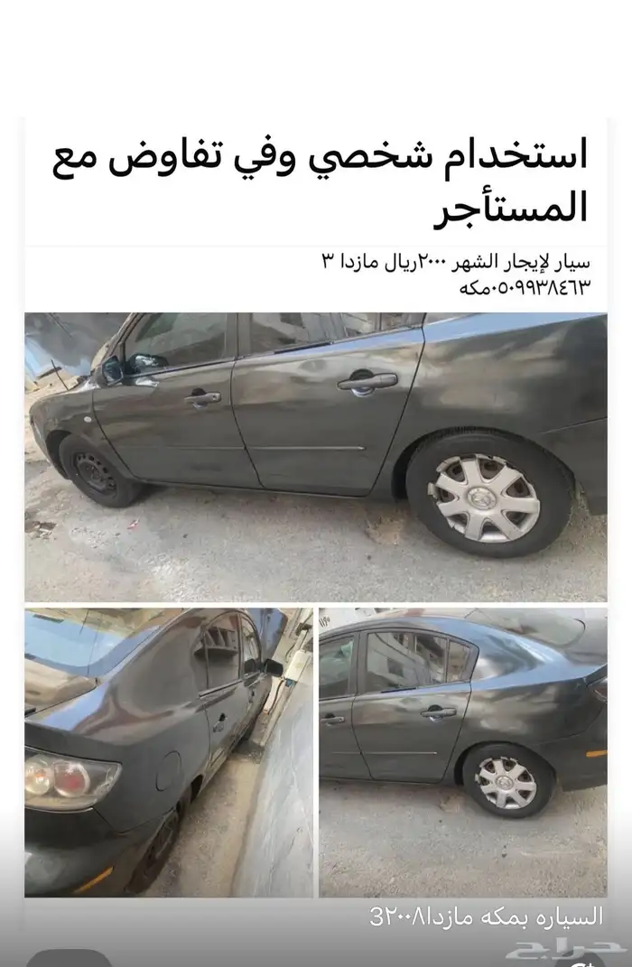 مازدا مازدا 3 AVANT 2008 قير اوتماتيك بنزين الممشى: 256 ألف كيلو دبل السياره للإيجار الشهري استخدام شخصي بمكه رجال يخاف الله