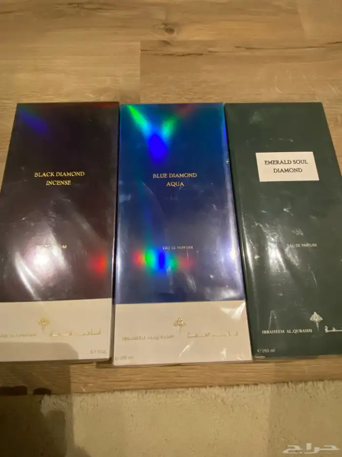 مجموعة عطور من إبراهيم القرشي إصدار 200 مل سعرها في المحل الواحد 440 ريال 1- عطر بلو دايموند عود السعر 180 ريال 2-عطر بلاك دايموند انجنيز السعر 180 ريال 3-ايمبرلد سول دايموند السعر 150 ريال