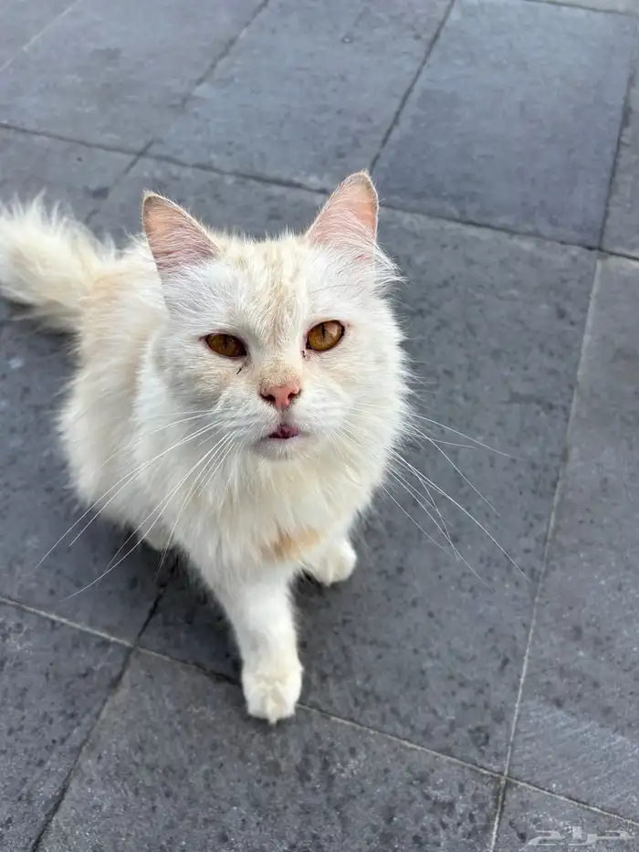 قط موجود من فترة اشوفه وواضح انه حق بيت الله لايسامح كل من يرمي قطة منزلية غير قادرة على التعايش مع ظروف الشارع