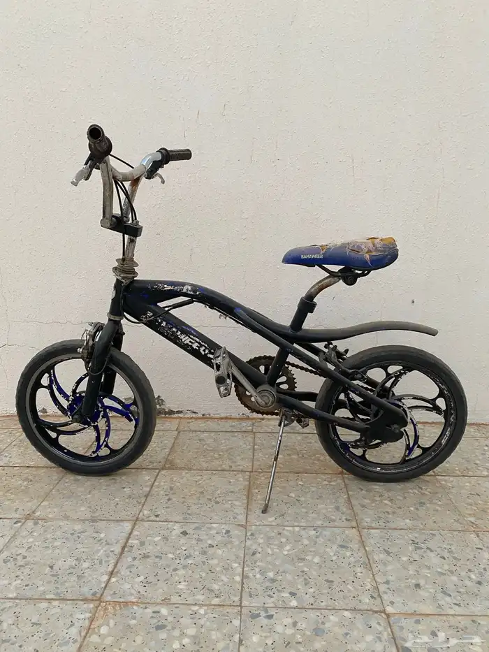 سيكل كوبرا مقاس 16 الكفرات حجريات السيكل كان لونه ازرق ورشيته اسود المرتبه به قطع بسيط