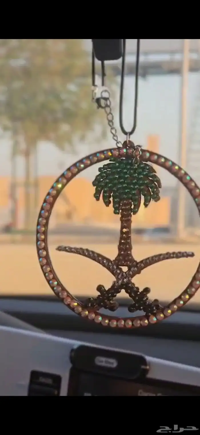 تعليقة سيارة سيفين ونخلة شعار المملكة شغل يدوي، 50 ريال شعار المملكه