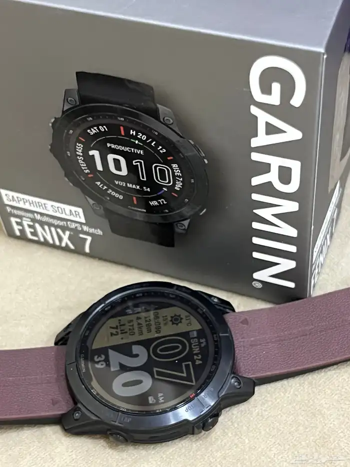 ساعة جارمن فينكس 7 سفاير سولار نظيفه جدا ..زجاج خالي من الخدوش تماما تشحن بالطاقه الشمسيه هيكل تيتانيوم.. زجاج ياقوت المقاس:47 البيع: 2500