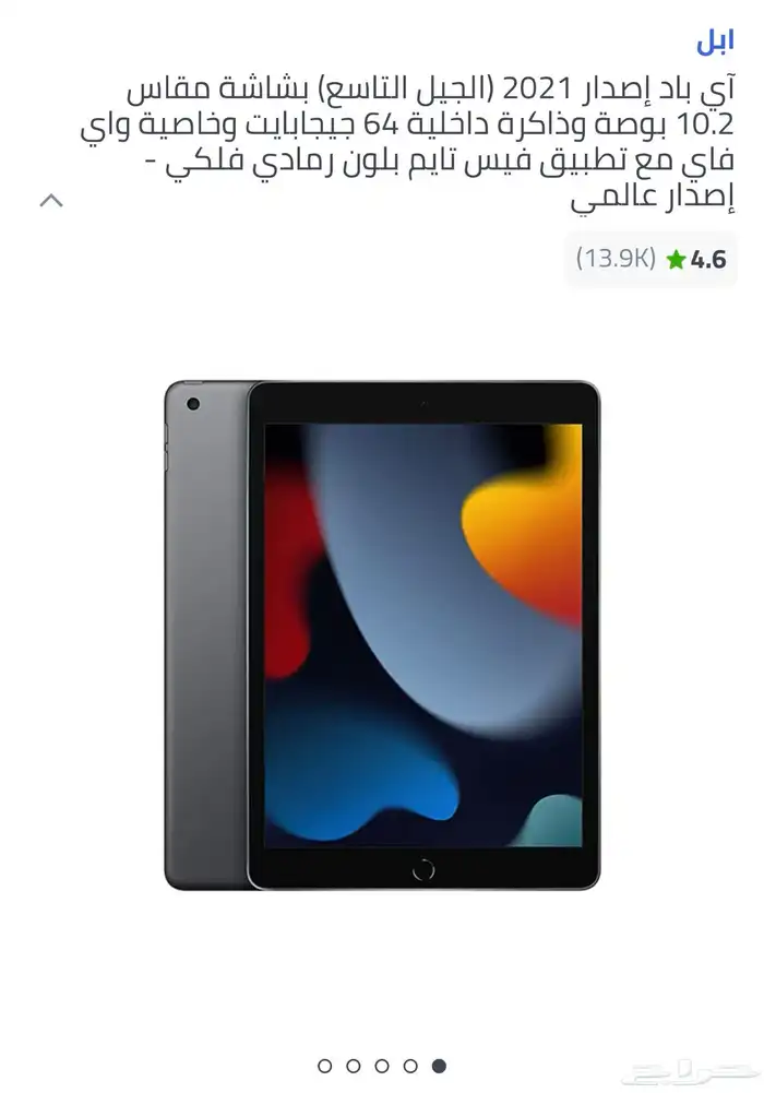 آي باد إصدار 2021 (الجيل التاسع) بشاشة مقاس 10.2 بوصة وذاكرة داخلية 64 جيجابايت وخاصية واي فاي مع تطبيق فيس تايم بلون رمادي فلكي - إصدار عالمي مستعمل شريته ب 1230 مع كرتونه على السوم حدي 900