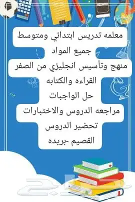 معلمه خصوصيه تدريس ابتدائي ومتوسط منهج وتأسيس