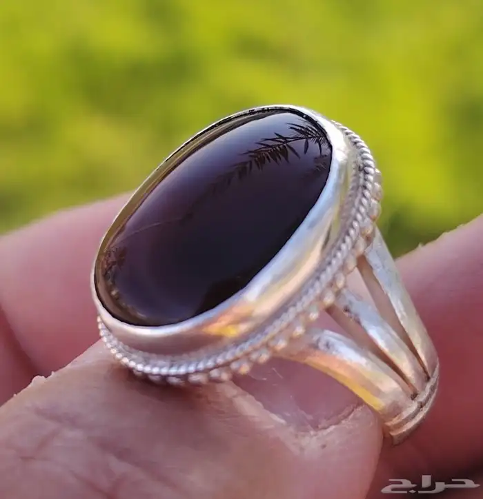 خاتم فضه بحجر عقيق يمني كبدي المقاس 20