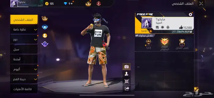 حساب فري فاير للبدل بحساب تيك توك فوق 20k لفل 67 ‏تيشيرتات 424 ‏بنطلونات 291 رقصات 39 حساب من فير باس 12 توصل مع الرقم. ذا ( رقم الجوال يظهر عند الضغط على زر تواصل )