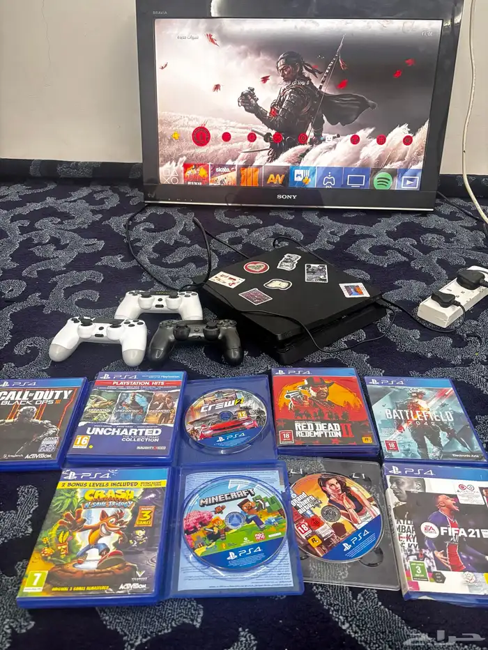 سوني 4 نضيف مادخل صيانة معه 10 اشرطة معه 3 ايادي وعليه ضمان اذا طلع فيه شي رجعه في كسر في الغطاء بسيط ولا يؤثر على الاداء لابراء الذمة فقط على السوم والصامل نراعيه