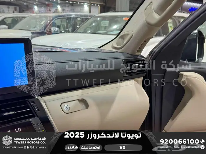 2025 شـركـة الـتـتـويـج للـسـيـارات - حي القادسية - شارع جبل الذبياني WWW.TTWEEJ.COM + + + + + + + + + + + + + + + + + + + + + + + + + + + + + + + + + + + + + + + + + + + + (( متوفر الان)) شركة المصنعة : تويوتا نوع السيارة : لاندكروزر فئة السيارة : VX نوع الوقود : هايبرد موديل السيارة : 2025 الألوان المتوفرة :أسود, ذهبي غامق , رمادي وكيل السيارة : سعودي + + + + + + + + + + + + + + + + + + + + + + + + + + + + + + + + + + + + + + + + + + + + * متوفر التقسيط و التأجير المنتهي بالتمليك عن طريق ((بنك الراجحي و بنك الاهلي و بنك الرياض و البنك العربي و بنك الانماء و شركة امكان )) * + + + + + + + + + + + + + + + + + + + + + + + + + + + + + + + + + + + + + + + + + + + + المواصفات /// • المحرك: 3.5 لتر هايبرد 6 إسطوانات, توربو مزدوج • القوة القصوى: 457 حصان • عزم الدوران: 790 نيوتن متر • ناقل الحركة 10 سرعات اتوماتيكة مع خاصية التحكم اليدوي • دفع رباعي مستمر بدبل خفيف و ثقيل • قفل دفرنس امامي + وسطي + خلفي • سعة خزان الوقود: 98 لتر • كفاءة استهلاك الوقود: 11.2 كم/لتر • 7 ركاب (شاملة السائق) • مقاس الإطارات: 265/55R20 • الأبعاد: • الطول الكلي: 5115 ملم • العرض الكلي: 1980 ملم • الارتفاع الكلي: 1945 ملم • جنوط المونيوم قياس 20 بوصة • أنوار أمامية إل إي دي بعدسات (مع تعديل أوتوماتيكي لمستوى الإضاءة ) • إضاءة نهارية إل إي دي • إشارات الإنعطاف الأمامية والخلفية بإضاءة تتابعية • برواز كشاف الضباب الامامي • منظف المصابيح الامامية • شبك امامي فضي و كروم • المرايا الخارجية كروم و بتحكم كهربائي مع إشارات إنعطاف • طي كهربائي اتوماتيكي للمرايات الخارجية • المرايات الخارجية تميل الى الاسفل عند الرجوع للخلف • اضاءة ارضية على المرايات الجانبية • إطار كروم للنوافذ • مقابض الأبواب الخارجية بلون الهيكل • شريط حماية جانبي كروم داكن + لون السيارة • عتبة جانبية بغطاء معدني واضاءة ارضية ترحيبية • عتبة من الكروم للصدام الخلفي • توصيلة للقطر • جناح خلفي • عوارض سقف مدمجة فضية اللون • فرش المقاعد: جلد فاخر • المقاعد الامامية بتحكم كهربائي مع ذاكرة لمقعد السائق • تهوية المقاعد الأمامية و مقاعد الصف الثاني/تدفئة المقاعد الأمامية • عتبة مضيئة للأبواب الأمامية والخلفية • شاشة عدادات رقمية 12.3 بوصة + + + + + + + + + + + + + + + + + + + + + + + + + + + + + + + + + + + + + + + + + + + + و للـتواصل معنا في اوقات العمل الفترة الصباحية ( من الساعة 8:00 صباحاً حتى 1:00 ظهراً ) جميع الأيام ماعدا الجمعة الفترة المسائية ( من بعد صلاة العصر حتى 9:00 مساء ) جميع الأيام + + + + + + + + + + + + + + + + + + + + + + + + + + + + + + + + + + + + + + + + + + + + * عزيزي العميل * يرجى الاتصال بنا عبر رقمنا الموحد 920066100 حيث ان جميع مندوبي المبيعات متواجدين للرد على استفساركم * و للاستفسار عن التقسيط و التمويل التأجيري نرجو التواصل على الواتساب على احد الأرقام : 0531813696 ابو شيخه 0507542464 المها 0509276001 عاصم 0555004639 سفيان 0558772327 ابو سيف 0532398833 مفرج 0534232263 محمد اسماعيل 0505881292 يوسف 0553303920 محمد فكري 0506906485 اسلام **ملاحظه في حالة عدم الرد الرجاء ترك رسالة واتس اب وسيتم